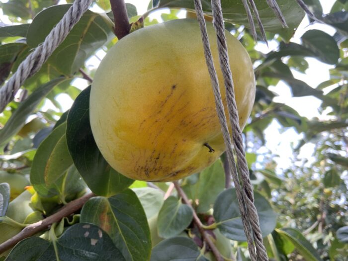 昨日は太秋柿の畑の様子を見に行きました。例年であれば10月の初めから少しずつ収穫が始まるのですが、今年は色づきが遅れています。夏の猛暑や、なかなか気温が下がらない最近の気候が影響しているのかもしれません。
