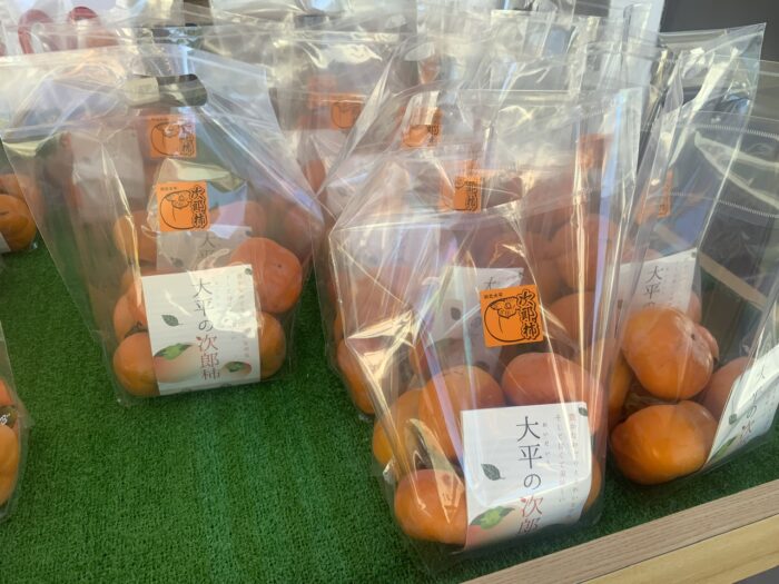 さて、次郎柿の収穫もだんだん増えてきました。店頭にも少しずつ並び始めています。