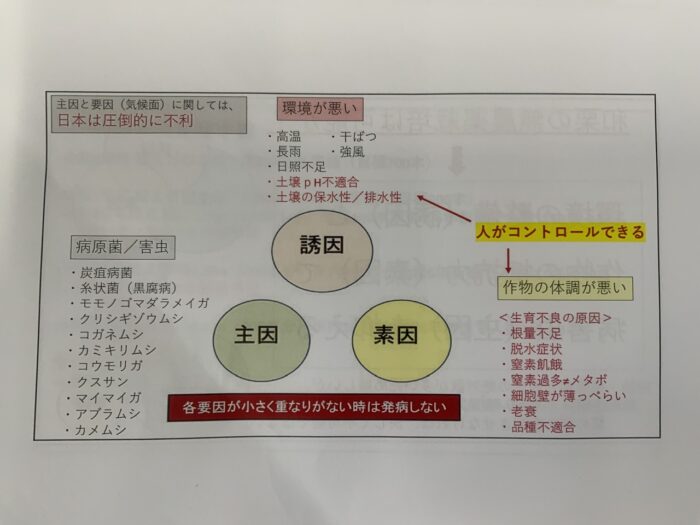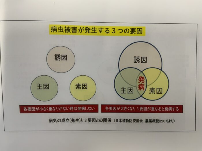 先日、農業の研修会に参加した際、病気や害虫が発生する仕組みについて発表してくださった方がいました。